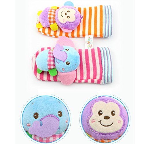 - One great toy to help boost your kid's visual, audio and motor coordination while keeping those little feet covered. This set creates sound as the baby moves, thus, catches your baby's attention and interest.