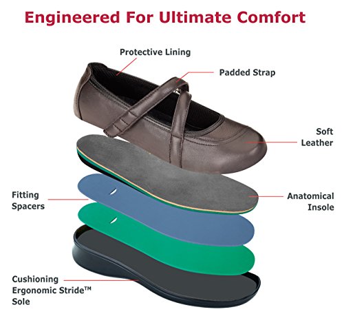 -. Feature : Orthotic support - contoured orthotic insole, with anatomical arch support and gel padded heel-seat, helps alleviate foot pain, and enhances comfort from heel to toe. / Easy gait - Light-weight cushioning sole with Ergonomic-Stride(TM) design softens step, and helps propel foot forward. / Protective Interior - Soft, seam-free lining design with extra foam padding eliminates pressure points, and helps reduce friction against skin. / Comfort fit - soft, non-binding upper eliminates pressure points and enhances comfort. / Adjustable fit - two sets of removable spacers (1/16" and 1/8" thick) allow the adjustment of the space inside the shoe for a perfect fit.