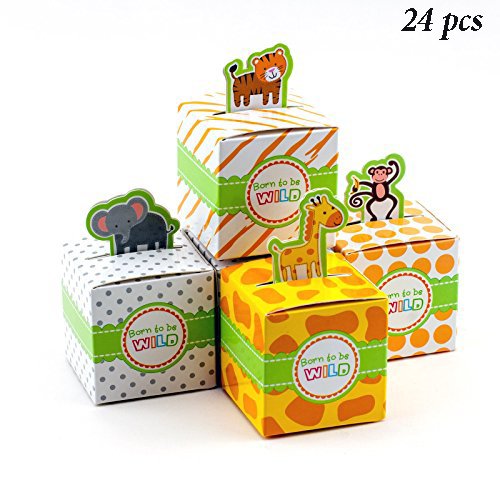 Adorox Small 24 Pcs Born To Be Wild Adorable Jungle Safari Zoo Theme Baby Shower Favor Candy Treat Box Cute Birthday Decoration (assorted)