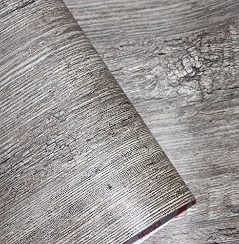 HaokHome 610792 Faux Wood Wallpaper Peel Stick Grey Wooden Plank Sticker For Bathroom Kitchen Prepasted Contact Paper