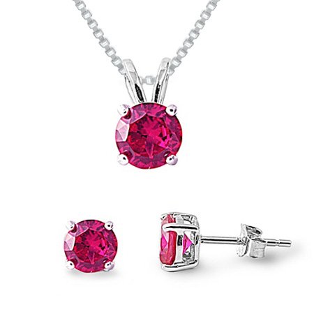 -. Title : Sterling Silver Simulated Ruby Necklace & Earrings Set