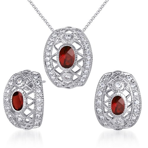 -. Title : Garnet Pendant Earrings Necklace Sterling Silver Rhodium Nickel Finish Oval Cut 2.00 Carats