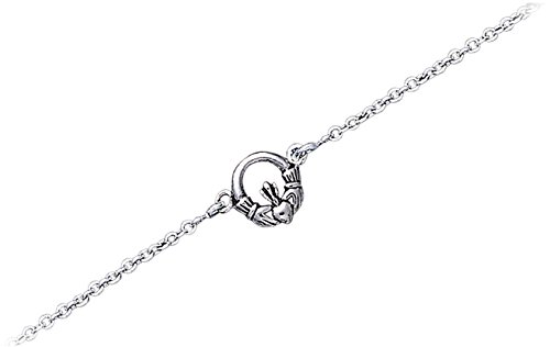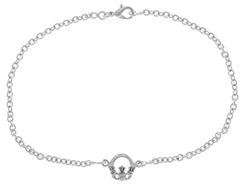 -. Title : Jewelry Trends Silver Plated Bronze Celtic Irish Claddagh Heart in Hands Stationary Charm Anklet