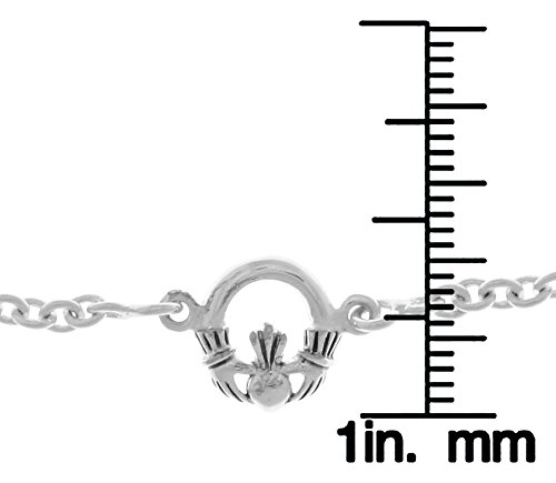 -. Feature : Metal: White Bronze based semi-precious metal alloyed with other non-toxic metals, such as zinc and then plated with .925 Sterling Silver. Made in Thailand. / Finish: High Polish; Approximate Claddagh Charm dimensions: 14.7 mm wide x 10.3 mm long x 1.5 mm deep / Approximate Overall Anklet dimensions: 10.3 mm wide x 9.0 inches long x 1.5 mm deep; Clasp: Lobster claw / Peter Stone© Jewelry Designs are exclusive and protected by Copyright Laws. / Complimentary gift box included