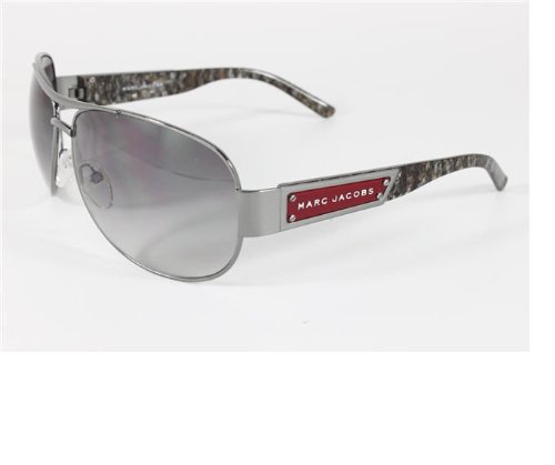 Marc Jacobs Sunglasses, style MJ125 U is a rectangular metal aviator with a double bridge. The MJ125 U features adjustable nose pads and plastic temples for extreme comfort. The Marc Jacobs logo is featured on a plaque on the temples. Marc Jacobs Sunglasses have lightweight scratch/impact resistant lenses.
