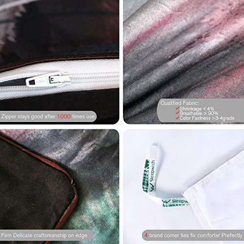 EXQUISITE WORKMANSHIP: The hidden zipper closure is convenient to put your duvet in and out, inside ties are added to keep your duvet at place. The sturdy zipper is beautifully tucked in and well-sewn, it can hold up perfectly after multiple use and washing. Double needles sewing edge, reactive printing and dyeing technology, and this cleverly positioned zipper, again, demonstrated the quality of the entire set.