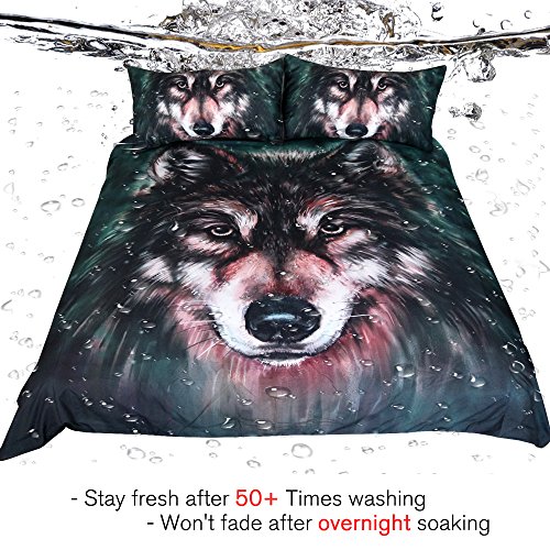 Sleepwish Wolf Bedding Kids 3D Bedding Cool Black Wolf Duvet Cover 3 Pcs Oil Painting Duvet Cover for Teens Twin