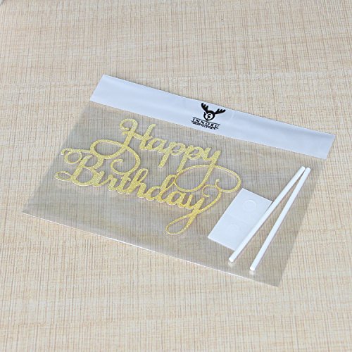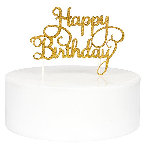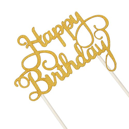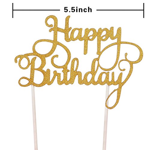 INNORU Happy Birthday Cake Toppers Single Sided Gold Glitter Party Decorations