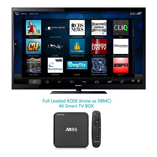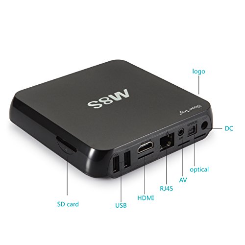 - Feature : S812 Quad-core Speed. TRONFY M8C TV box has quad-core CPU, Octa-core GPU. Its high machine configuration gives you ultra-fast running speed and professional image processing ability / All kinds of pre-installed video software, XBMC, YouTube, Netflix, etc. XBMC can be used to play almost all popular audio and video formats. Such as MP3, WMA, ACC, APE, FLAC audio format and MP4, AVI, DAT, FLV, RMVB, MOV, TS video format / Android 4.4.2kikat.Rapid, stable configuration coupled with the highly customized android kikat 4.4.2. Watching TV shows, movies; browsing webpage and photos, and playing android games with your children / Professional H.265 video decoding technology and dual-band WIFI 2.4GHZ and 5GHZ, offering a more stable WIFI signal to enjoy a higher quality video experience. 2G RAM/ 8G ROM, 32G Max Extended Capacity gives you more space to download your favorite APPs and caches to browse websites, play games, run apps, watch movies more smoothly / Easy connection and simple operation. vensmile-tech M8S TV BOX has HDMI and AV out port. You can go directly to let your TV and M8S are connected through a HDMI cable or an AV cable. Two 2.0 USB port, connect with your mouse and keyboard to help you operate more convenient. Infrared Remote control and Bluetooth 4.0 let you enjoy your wonderful life which the wireless brings to you