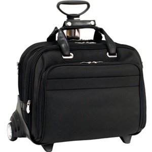 Product Description McKlein's R Series Midway 17 inch Wheeled Laptop Case has a patented 2-in-1 detachable wheel and handle system. Secure, detachable patent pending Fly-Through Checkpoint-Friendly laptop sleeve design is padded with high-density foam and fits most 17 inch laptops. Adjustable, non slip, shock absorbing shoulder strap alleviates body strain and has a drop length of 13-20 inches. Front organizer has storage space for media devices, cell phone, business cards, key holder, and pens. Front compartment features two small pockets and storage space for files. 0
