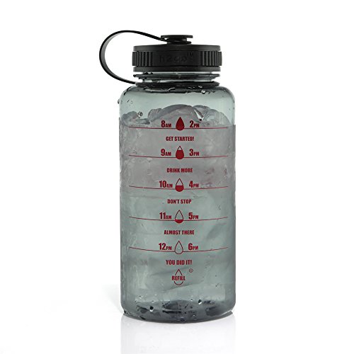 Motivational Bottle 34oz Fitness Workout Sports Water Bottle with Unique Timeline | Measurements | Goal Marked Times For Measuring Your Daily Water Intake, BPA Free Non-toxic Tritan (graphite)