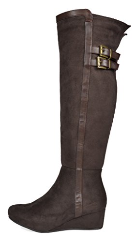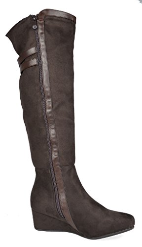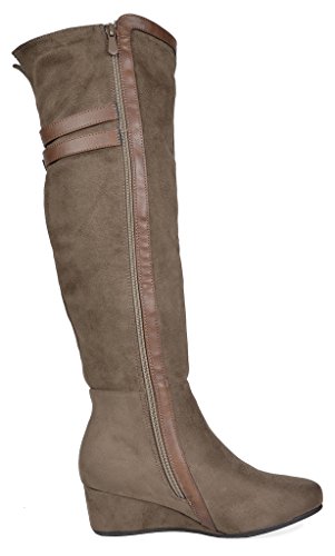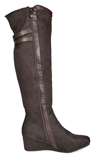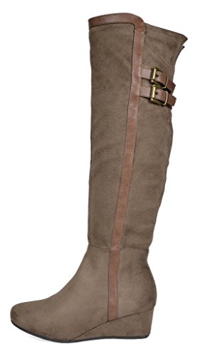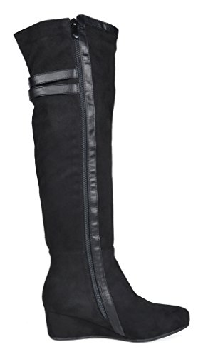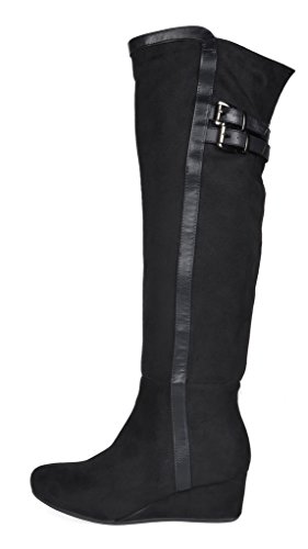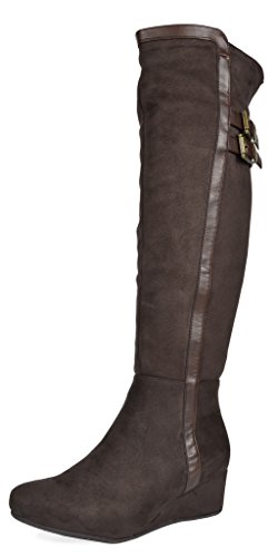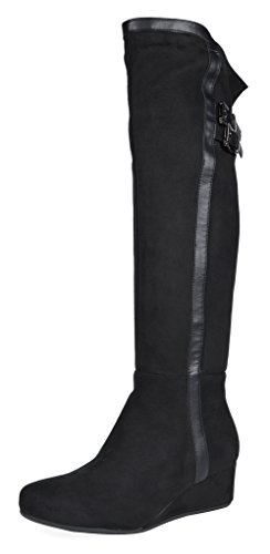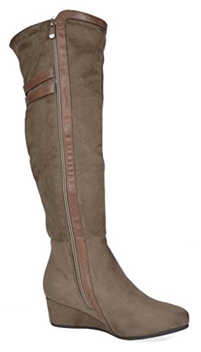 Binding : Apparel Product Description Over the Knee mixed media boots feature a rear panel in quilted design for an in trend style and a vegan suede front with stitching detail down the shaft for a classic look. Boots are finished with a rounded toe, a low wedge heel, a soft flexible sole, and a side zipper for easy on and off. 0