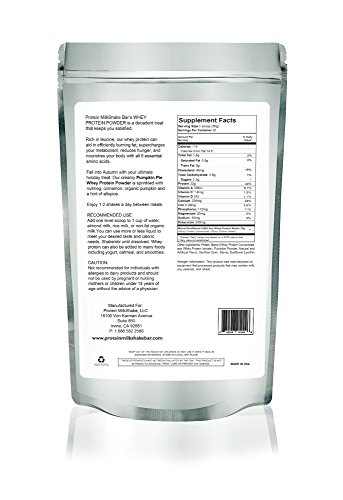 -. Feature : FREE GIFTS BONUS WITH PURCHASE - Get up to 5 Free Sample Flavors ($25.00 Value). Limited Quantity! / PUMPKIN PIE WHEY PROTEIN POWDER Features A SP.R.Inkling Nutmeg, Cinnamon and Oraganic Pumpkin, With A Hint Of Allspice That's Just So Beater Lickin' Good. It Also Nourishes Your Body, Significantly Reduces Your Cravings & Appetite, Safe & Effective For Weight Loss & Weight Maintenance. NEW IMPROVED FORMULA, NOW WITH ALL-NATURAL STEVIA! This 100% natural, zero calorie sugar substitute adds the yummy sweetness you crave, without undoing all the work you've done. / NEW IMPROVED FORMULA, 100% NATURAL HIGH PURITY STEVIA: This premium zero calorie sugar substitute adds the yummy sweetness you crave - with NO bitter after taste. / SAVE TIME & MONEY: You Would Need To Eat 1 Chicken Breast, 4 Eggs, or 1 Can Of Tuna To Get The Equivalent Amount Of Protein Found In 1 Serving of Protein Milkshake. Each Serving Contains 22g Protein - 120 Calories - 1g Fat - 4g Carbs. Protein Milkshake Saves You Time, Money And The Hassle Of Cooking. / 100% MONEY BACK GUARANTEE: **1,2 AND 3 STAR RATINGS ARE CONSIDERED UNSATISFACTORY** If, For Whatever Reason, You Don't Absolutely Love Your Protein Milkshake Just Email or Call Us And We'll Refund Every Penny (Or Exchange It, If You'd Prefer Another Flavor). Refunds & Exchanges are Processed The Same Business Day.