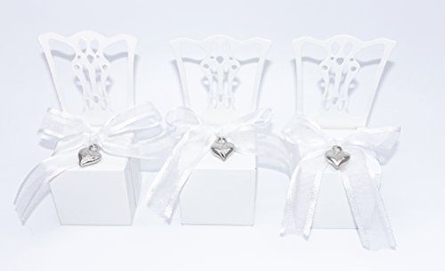 Tongshi Miniature White Chair Wedding Party Favor Boxes, Pack of 50