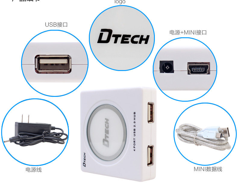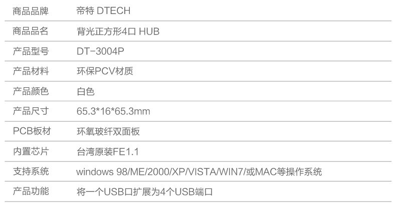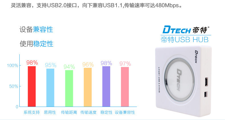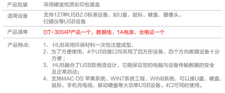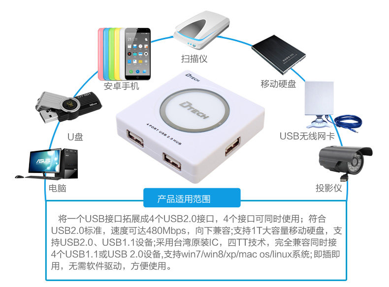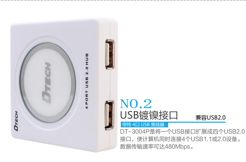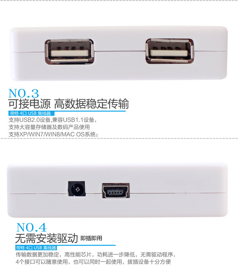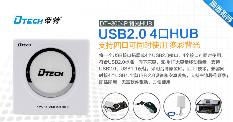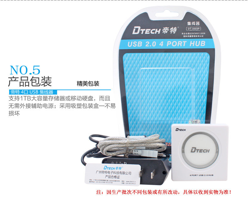 帝特DT-3004P USB分线器usb2.0hub集线器 带电源支持1TB移动硬盘