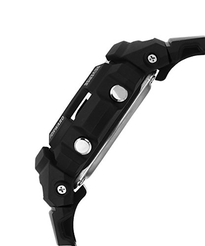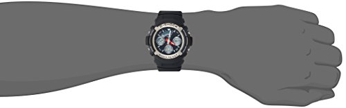 This Casio men's watch features a dual display that has both the elegance of an analog watch and the functionality of a digital one. The stainless steel case has a protective silver-tone metal bezel. A red hours hand and a white minutes hand sweep around a black dial that has dashes for indexes while containing a digital display that allows for five daily alarms, a countdown timer, stopwatch, auto LED light, a calendar pre-programmed until 2099, and world time functionality with 29 time zones. A black resin band secures the watch to the wrist. The watch is water resistant to 660 feet (200 meters).Feature