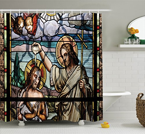 Religious Shower Curtain by Ambesonne, Colorful Religious Ritual with Impotant Scenery Historic Art Illustration Print, Fabric Bathroom Decor Set with Hooks, 70 Inches, Multicolor