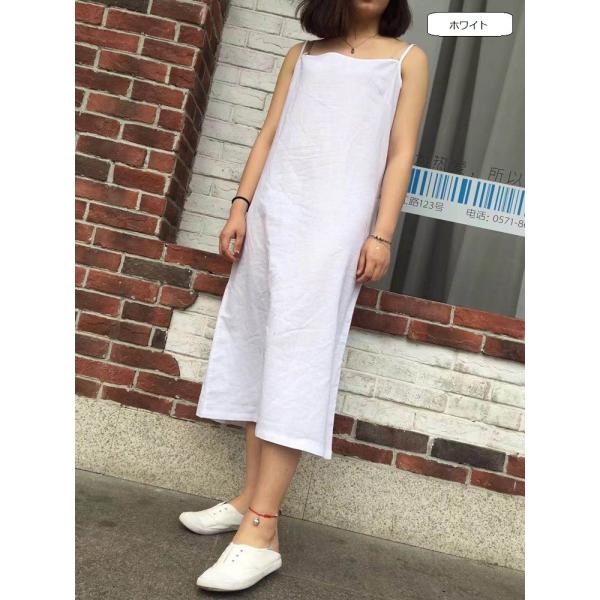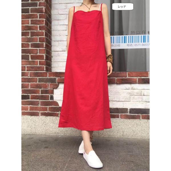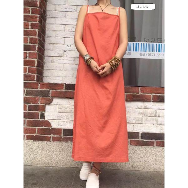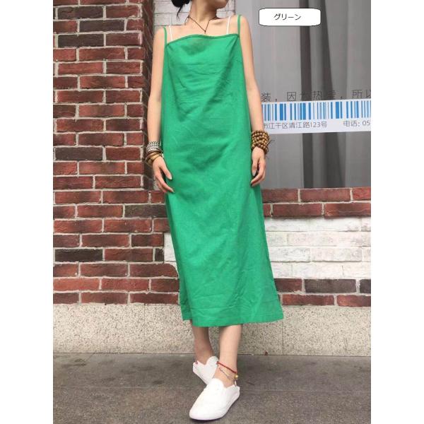 リネン素材のナチュラルロング丈キャミワンピース♪