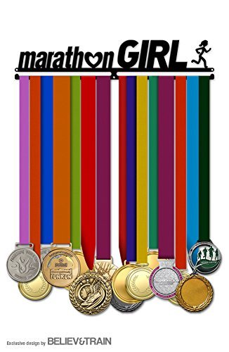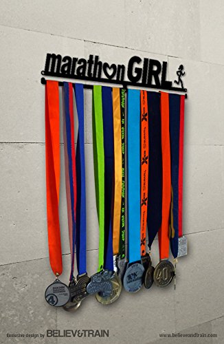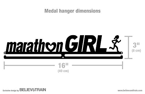 -. Binding : Misc. -. Brand : Believe&Train -. Color : Black -. EAN : 0099461320147 -. Feature : Unique design with motivational message to proudly display medals / Made of light weight high grade aluminum. Holds 16-20 medals** / Extension kits available to add more medals (sold separately) / Slide medals to display / Easy to install. Includes complete wall mounting kit -. IsAutographed : 0 -. IsMemorabilia : 0 -. Label : Alveni -. LegalDisclaimer : *Does not include tools nor medals. **Number of medals may vary according to ribbons width. It ships to USA except AK/HI/Puerto Rico. Most orders are shipped within 2-3 days from the purchase date. -. Manufacturer : Alveni -. MPN : MHMGIWBK11 -. PackageQuantity : 1 -. PartNumber : MHMGIWBK11 -. ProductGroup : Sports -. ProductTypeName : SPORTING_GOODS -. Publisher : Alveni -. Size : 3" x 16" (40 cm x 8 cm) -. Studio : Alveni -. Title : Running Medal Hanger - Marathon Girl -. UPC : 099461320147