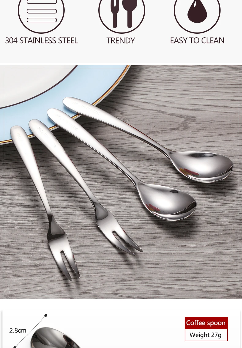Size:Fork:13.5 x 1.2cm,Spoon:13 x 2.8cm