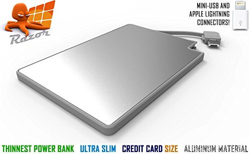 -. Binding : Wireless Phone Accessory -. Brand : Octopus -. Color : Silver -. EAN : 0764804139006 -. Feature : PORTABLE CHARGER: Features a remarkable 2300mAh capacity capable of recharging your phone on the go. This in a thinnest power bank available today on the market, light and stylish aluminum silver body: ONLY 1/8 INCH & weighs ONLY 2 OUNCES. Talk and charge comfortably from one hand. / COMPATIBILITY: Built-In micro USB charge cable with FREE APPLE IPHONE 9-PIN LIGHTNING CONNECTOR (INCLUDED) makes it compatible with almost all smart devices. Apple: iPhone 5/5s/5c/6/6plus/SE. Android: Galaxy S7/S6/S5/S4/S3, Galaxy Edge, Note 3/2, LG G3 and others with micro USB input. Other Devices: Most smart devices with micro USB input, such as Bluetooth Devices: head set, ear phone, mobile speaker etc; MP3/4; Camera Battery Charger, etc. / BUILD TO LAST: Sleek and robust aluminum case. Contains a premium li-polymer battery. FC, CE RoHS certifications. Includes all the advanced safety features. Can be fully refilled more than 500 times. Vibration, deformation, 3 feet drop, heat and cold tested. / HANDY BACKUP BATTERY: This thinnest 4mm (1/8 inch) power razor portable charger is similar size to a credit card that makes it super compact, ultra slim and pocket/wallet friendly. For anywhere you go including travel, camping, festivals. Perfect for your long days on the road or for long plane flights. A must have for anyone that who depends on a phone. It comes in handy when you are away from power source. / WHAT YOU GET: Slimest wallet size 4mm OCTOPUS RAZOR power bank with micro-USB charging cable, Apple iPhone 9-pin lightning connector and user manual. -. Label : Octopus Products -. Manufacturer : Octopus Products -. Model : VT-23O -. MPN : WT-23O -. PackageQuantity : 1 -. PartNumber : WT-23O -. ProductGroup : Wireless -. ProductTypeName : WIRELESS_ACCESSORY -. Publisher : Octopus Products -. Studio : Octopus Products -. Title : Thinnest 4mm Power Bank, OCTOPUS RAZOR Portable 2300mAh Charger Super Slim and Fast for Cell Phones - 2016 Model External Battery for Apple iPhone, Samsung Galaxy and More - Aluminum (Grey) -. UPC : 764804139006