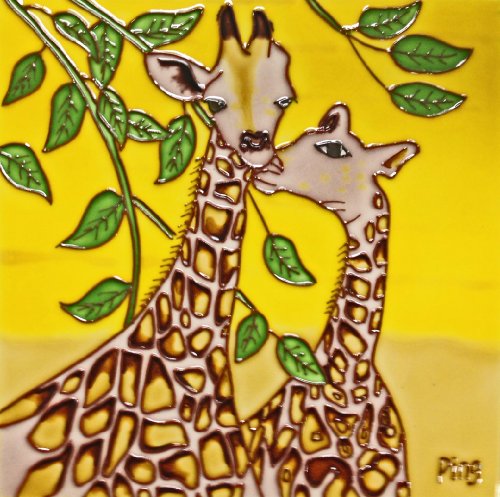 Continental Art Center BD-2044 8 by 8-Inch Two Giraffes Ceramic Art Tile