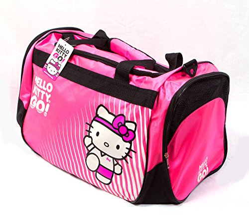 Product Description Pack your belongings in this spacious Hello Kitty sports bag/ duffle bag. An adjustable shoulder strap and plenty of pocket space makes this bag both convenient and reliable. 0