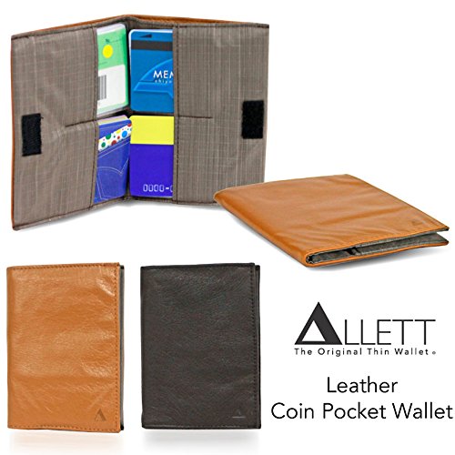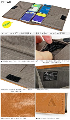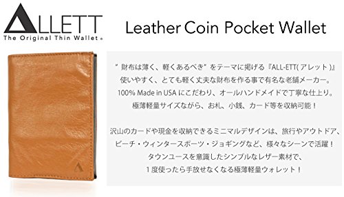 -. Feature : ALLETT レザー コインポケット 2つ折りウォレット 小銭入れ付き AL016 / 生産国:アメリカ製  重量:約35g / 素材:表地=レザー 内側=ナイロン(リップストップ素材) / 内側:カードサイズポケット4カ所(最大24枚収納可能) / カードポケット内:滑り止めラバーグリップ付き/札入れ2ヵ所/外側ジッパー式コインポケット1ヵ所/メインポケット:ベルクロ開閉