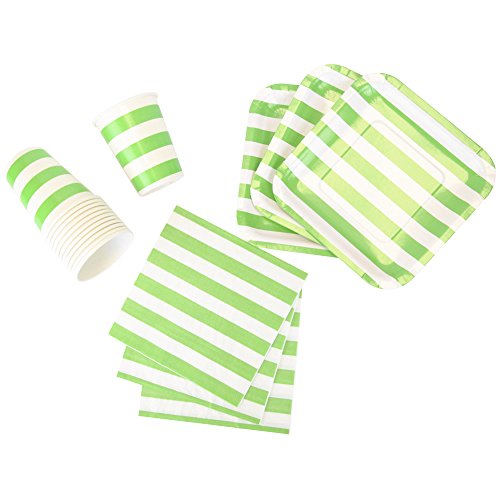 Just Artifacts Disposable Party Tableware 44pcs Striped Pattern Dining Set (Square Plates, Cups, Napkins) - Color: Green Apple - Decorative Tableware for Parties, Baby Showers, and Life Celebrations!