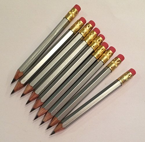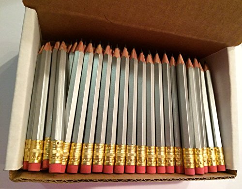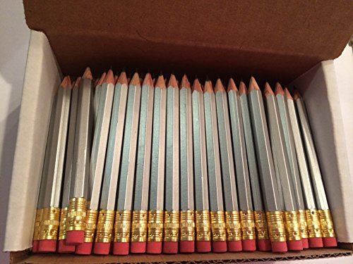 Half Pencils with Eraser - Golf, Classroom, Pew, Short, Mini, Non Toxic, Hexagon, Sharpened, #2 Pencil, Color: Silver, Box of 144, (1 gross) Golf Pocket Pencils ™