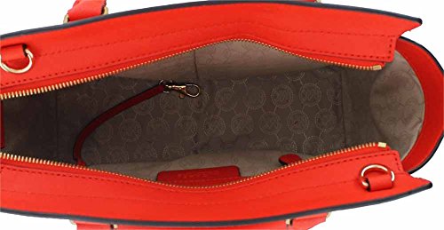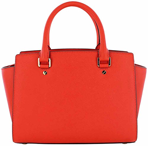 Celebrate Great American Fashion with The Michael Kors Selma Medium Satchel. This purse features a sleek silhouette, rolled handles with removable cross body straps provides a versatile wear, polished gold tone hardware, MK signature pattern lining, spacious interior with zip and slide pockets, and saffiano leather exterior. Care for purse with mild leather cream. Michael Kors is a globally awarded designer who produces luxury items that carry unfaltering designs which are sure to withhold the tests of time. These products are built to last and stay up with latest fashions and styles, leaving you with the most desired looks.Feature