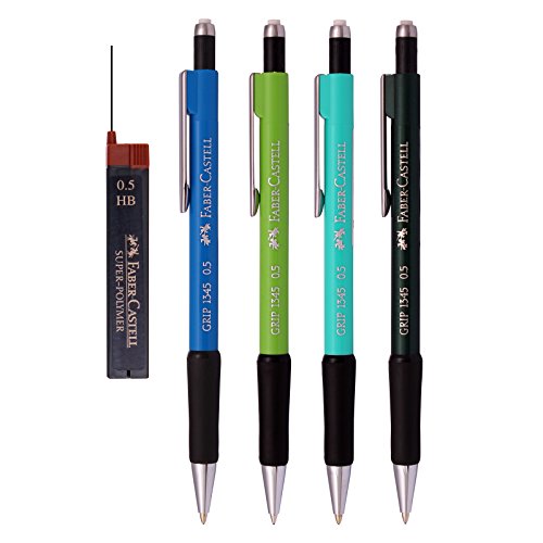 Faber Castell Grip 1345 Drafting Mechanical Pencil 0.5 mm (4 Pack)+Super Polymer HB Leads 1 Tube