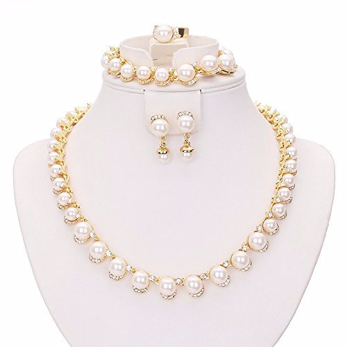 -. Title : Moochi 18K Gold Plated White Man-made Pearls Chain Jewelry Set