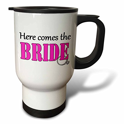 3dRose tm_193514_1 Here Comes The Bride Pink Travel Mug, 14-Ounce, Stainless Steel