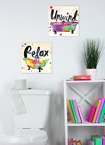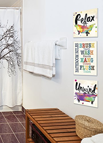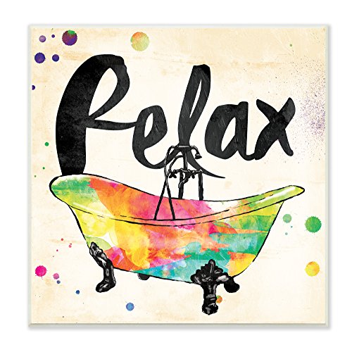 Stupell Home Décor Relax Rainbow Colors Icon Bath Wall Plaque Art, 12 x 0.5 x 12, Proudly Made in USA