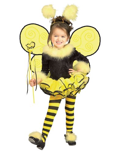 Buzzing around a garden you'll find cute little striped bugs looking for some pollen. With what they get from flowers they go back to their honeycombed hive to make the most tasty treat nature has ever created, honey. Now your tiny tot can buzz around the neighborhood collecting candy this Halloween in this bee costume! - Leotard w/Tutu - Headband - Wand - Wings - Shoe PuffsFeature