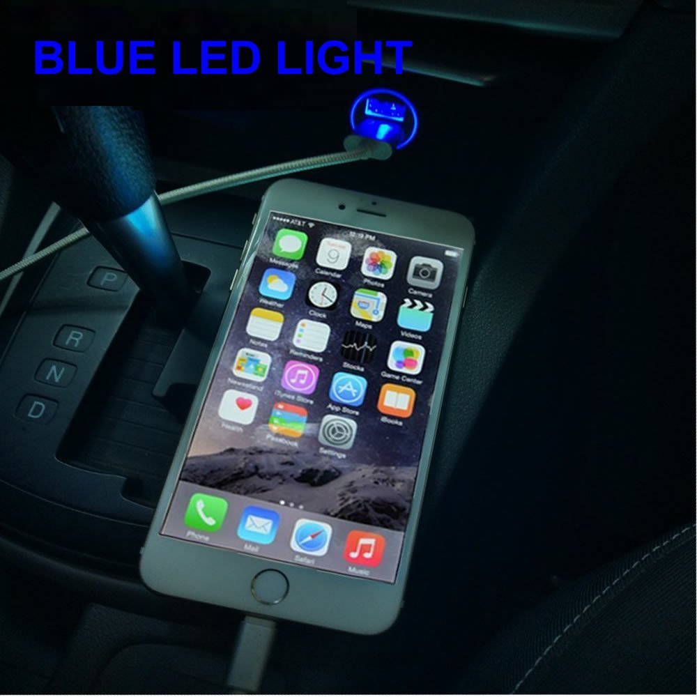 The inside of the USB port glows blue when energized, and USB connection is made even in the dark car at night