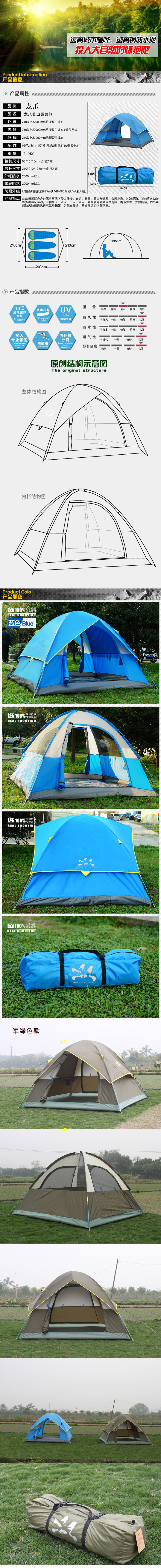 Inner tent material: 210D oxford cloth fabric