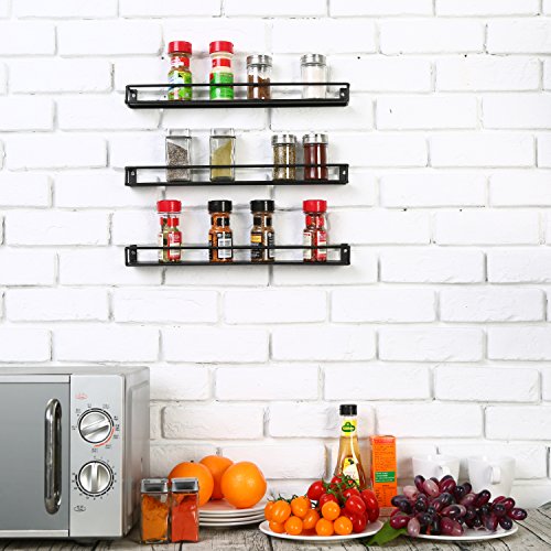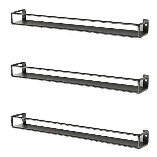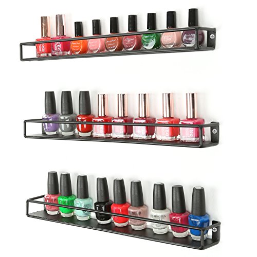 Set of 3 Black Metal Wall Mounted Nail Polish & Essential Oils Display Shelves / Kitchen Spice Jars Rack