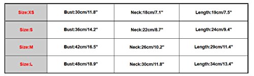 ▶Size:XS--Bust:30cm/11.8"---Neck:18cm/7.1"-----Length:19cm/7.5" ▶Size:S----Bust:36cm/14.2"---Neck:22cm/8.7"-----Length:24cm/9.4" ▶Size:M----Bust:42cm/16.5"---Neck:26cm/10.2"---Length:29cm/11.4" ▶Size:L-----Bust:48cm/18.9"---Neck:30cm/11.8"---Length:34cm/13.4" 0