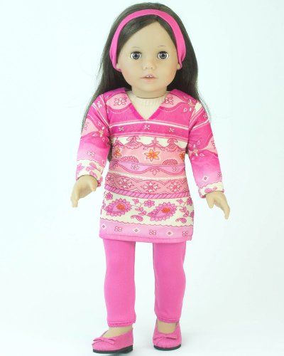 - Title : 18 Inch Doll Clothing 3 Pc. Outfit Fits 18" American Girl Dolls & More! Pink Print Long Sleeve Tunic Dress & Hot Pink Leggings & Headband