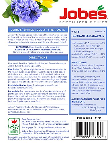 Jobe’s Fertilizer Spikes for Bulbs and Perennials 9-12-6 Time Release Fertilizer for Tulips, Daffodils and all Other Bulb Perennials, 18 Spikes Per Package