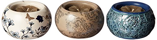 Up Words by Pavilion Blue and Brown Mini Tea Light Candle Holders, Set of 3, Each 2-1/2-Inch Long, Tea Light Candles Included