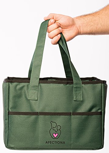 From Parents for Parents Designed with a lot of care and affection by a mother of two, Afectiona Green Diaper Bag with tote separator is meant to help parents all over the world. Heavy duty enough to carry up to 41.88 lbs. without tearing or breaking, it is probably the best diaper bag on the market. The changing diaper bag features: - Quick-grab handles