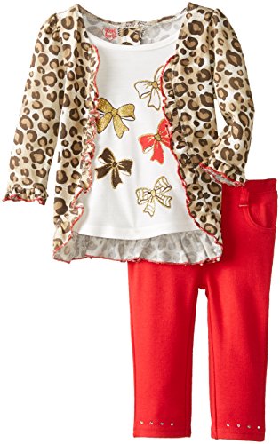 -. Feature : Animal print and cream 2fer top with bows with glitter screen-print / Red pant to match with rhinestones on bottom