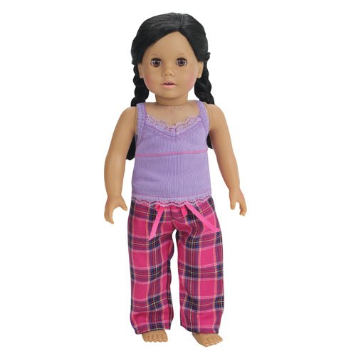 -. Title : 18 Inch Doll Pajamas, 2 Pc. PJ's Set Fits 18 Inch American Girl Dolls & More, Purple Tank Top, Pink & Purple Plaid PJ Pants