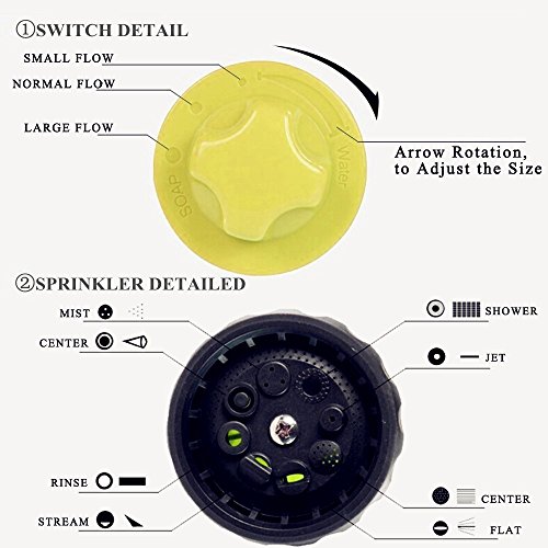 ★ WIDELY USE. This garden hose nozzle spray perfect for washing gutters, windows, house exteriors, cars, boats, sidewalks, stairs, sliding doors and cleaning gardens pools or showering your pets in your right type of stream