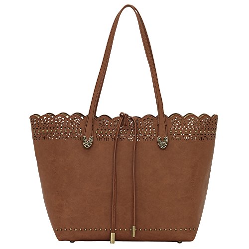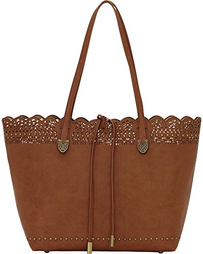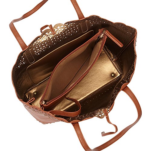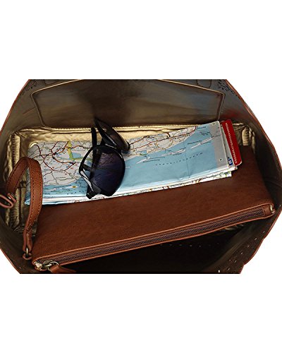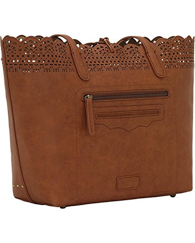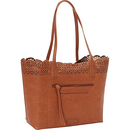 Studio : American West Publisher : American West Binding : Accessory Product Description The Darlington Filigree Day Tote is incredibly fashionable with its light filigree lace edge, and very functional with its highly organized interior, making this an ideal everyday bag. Part of the Darlington Collection from Bandana by American West. Faux leather day tote. Features a faux leather filigree lace edge, silver-tone studs, and bolo-style tassels with silver-tone metal tips. Interior compartment has a detachable zip-top pouch large enough to store a standard tablet. Dual shoulder straps with beautiful metal tip accents. Bolo-style tassels secure the top of the tote. Interior metallic man-made lining with back zipper pocket and once pouch pockets. Imported. Measurements Bottom Width 12 in Depth 5 in Height 11 in Strap Length 23 in Strap Drop 11 in Weight 1 lb 5 oz This product may have a manufacturer's warranty. Please visit the manufacturer's website or contact us at for full manufacturer warranty details. 0