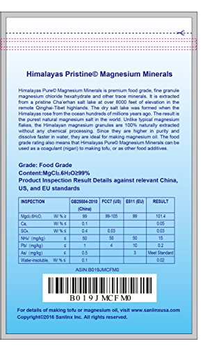 -. Binding : Health and Beauty -. Brand : Himalayas P.R.Istine -. Feature : Premium pure magnesium fine granule from the P.R.Istine Himalayas / Packed in convenient resealable ziplock bags for multiple uses / Purer and faster dissolving into water - perfect for making magnesium oil or adding directly to bath water / Relieves aches and pains, improves mood and relieves stress / Restores cellular magnesium levels. Supports detoxification. Acts as a cellular protectant. Encourages healthy skin tissue -. Label : Sanlinx Inc. -. Manufacturer : Sanlinx Inc. -. MPN : HIM8860 -. PackageQuantity : 1 -. PartNumber : HIM8860 -. ProductGroup : Health and Beauty -. ProductTypeName : HEALTH_PERSONAL_CARE -. Publisher : Sanlinx Inc. -. Studio : Sanlinx Inc. -. Title : Himalayas Magnesium Minerals for Making Magnesium Oil – Multiple Use Zip-log Package