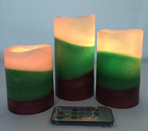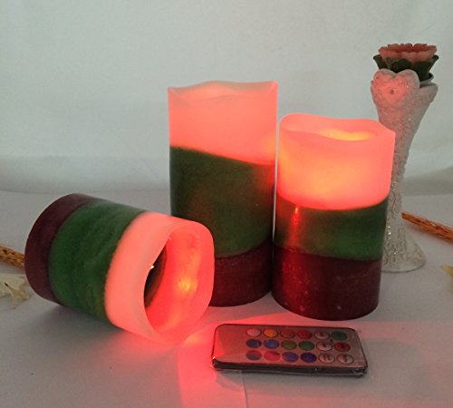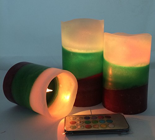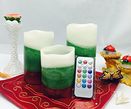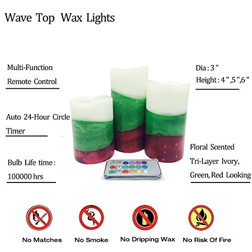 Adoria Real Wax Led Lights Auto-Circle Timer,Remote Scent Tri-Layers Color Snowflake Candles Set of 3 -Tall 4,5,6inch
